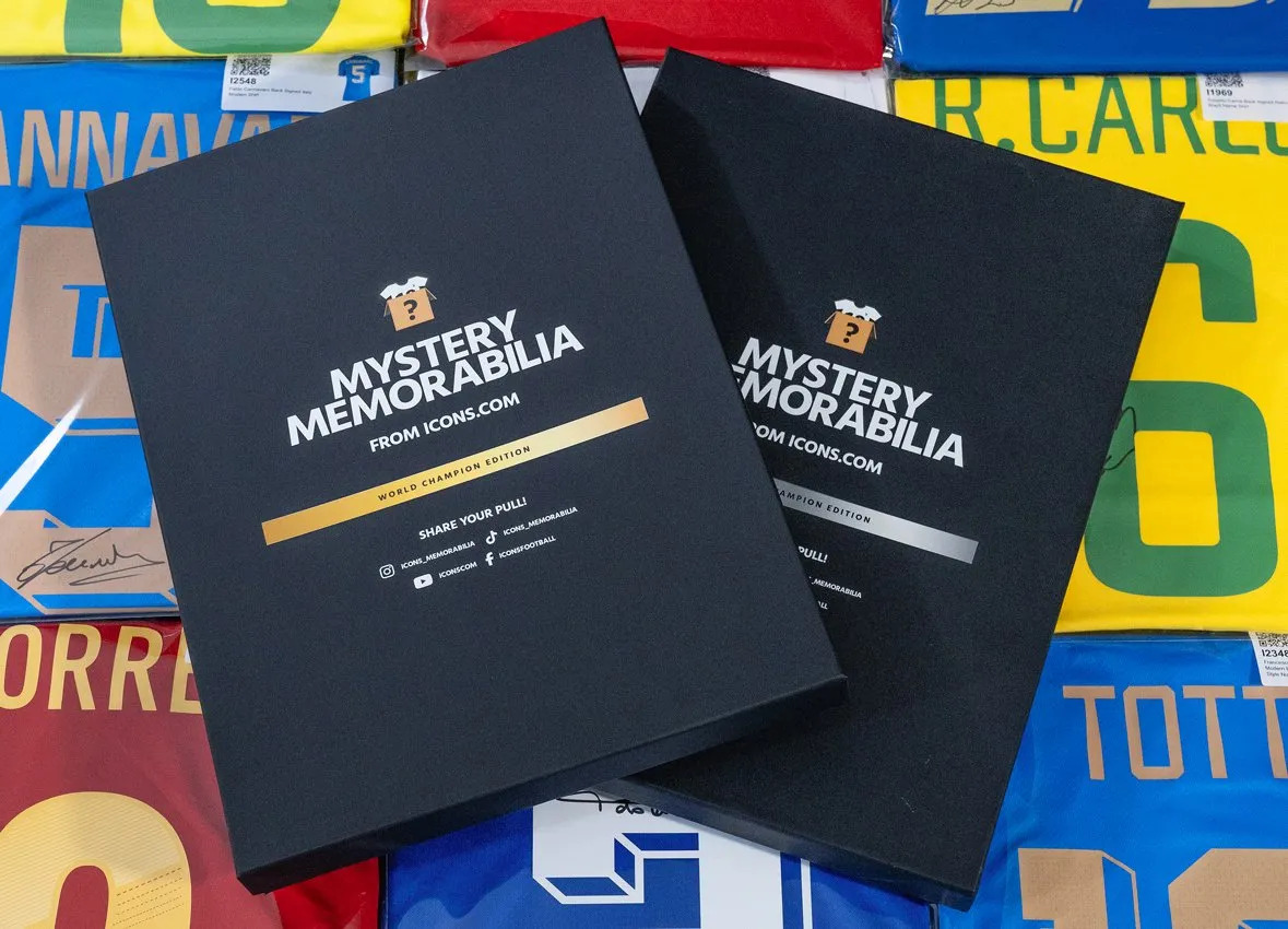The Mystery Memorabilia concept is simple. Buy a box from Icons.com and you’ll receive a shirt signed by one of the greats of football… you just won’t know who you’ve got until you unbox it!